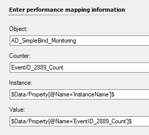 I´m trying to perform a simple query. The number of Event ID 2889 should be counted every 15 minutes and displayed as a performance counter in SCOM.